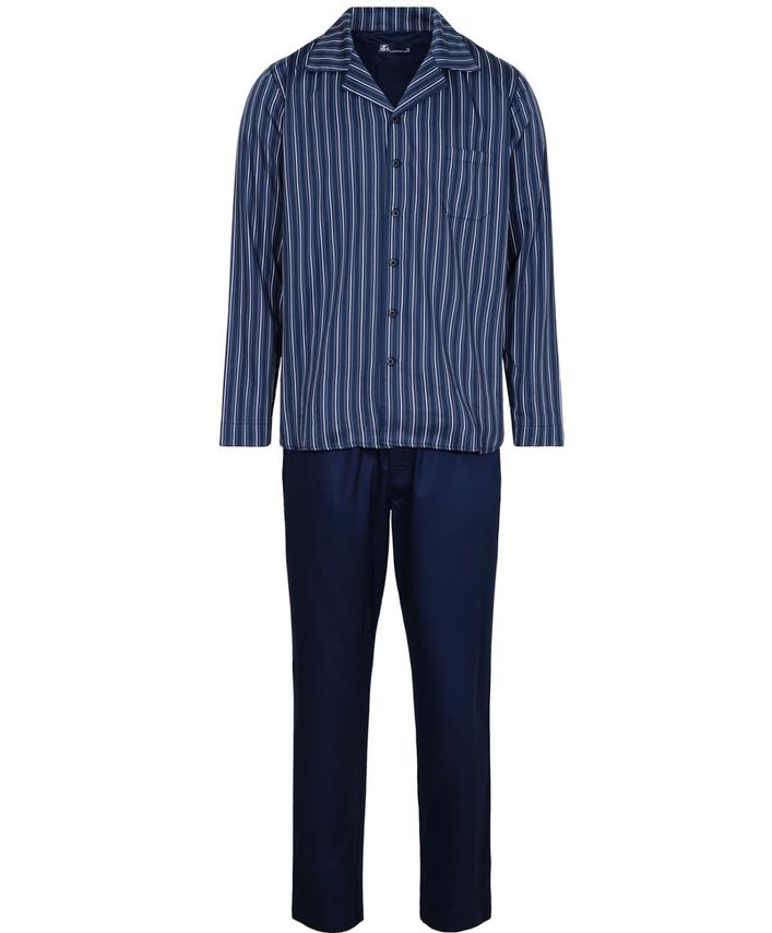 . Lækker blød pyjamas fra JBS fremstillet af 100% bomuld i satinkvalitet. Sættet består af bukser og gennemknappet skjorte.Dette produkt hører til JBS Homewear serien, der er kendt