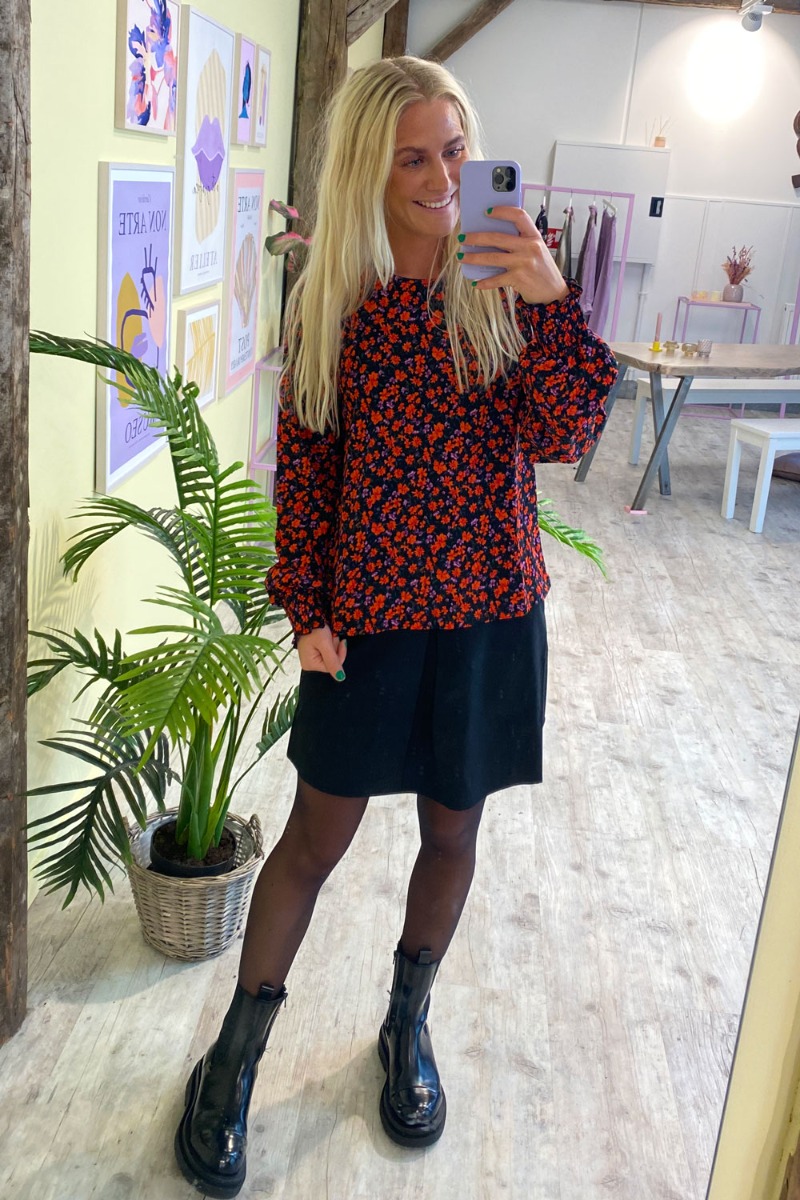 Vi har fundet Jdy – Bluse – Claude Ls O-neck Top – Black Orange Flower fra Jdy hos Lykke by Lykke i kategorien Lagersalg. Så fin bluse fra JDY med sort baggrund og blomsterprint i lilla og røde nuancer. Blusen er lavet i en dejlig behagelig kvalitet med rund hals og lange ærmer der afsluttes med en bred smock. Style den til jeans eller nederdel alt efter anledning.Â