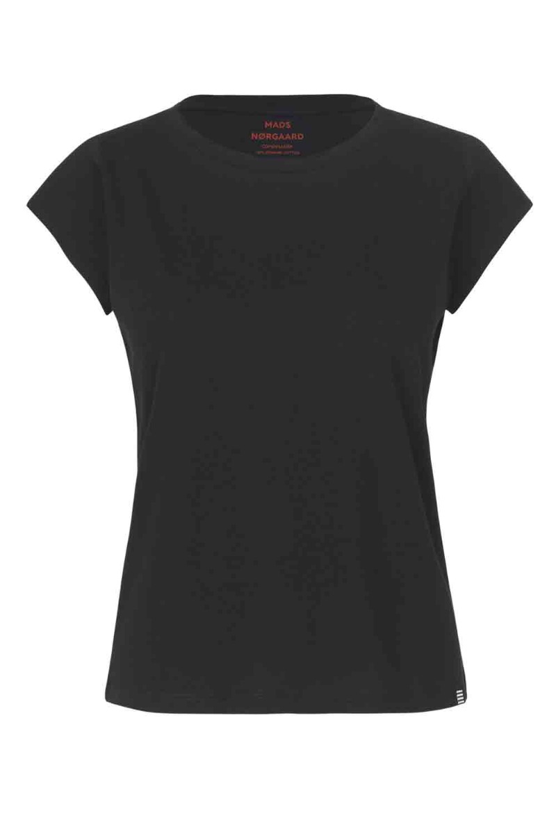Vi har fundet Mads Nørgaard – T-shirt – Organic Favorite Teasy Tee – Black fra Mads Nørgaard hos Lykke by Lykke i kategorien Udsalg. Klassisk basis t-shirt fra Mads Nørgaard i sort. T-shirten har lidt figur, der gør den perfekt at have på. Den er med rund halsudskæring og et lille ærme. T-shirten er lavet i 100% økologisk bomuld og er et must have at have i garderoben. Den kan styles t