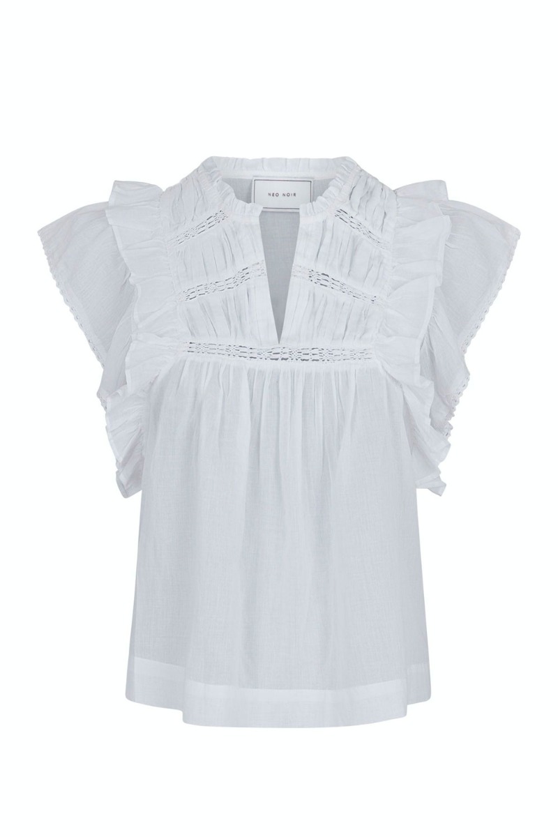 Vi har fundet Neo Noir – Top – Jayla S Voile Top – White fra Neo Noir hos Lykke by Lykke i kategorien Udsalg. Sød feminin top fra Neo Noir med matchende nederdel. Toppen er designet med de fineste flæsedetaljer og mønstre. Den er i en behagelig blød kvalitet der sidder let løst og er derfor oplagt til de varme sommerdage. Style den både til fest og hverdag.Â