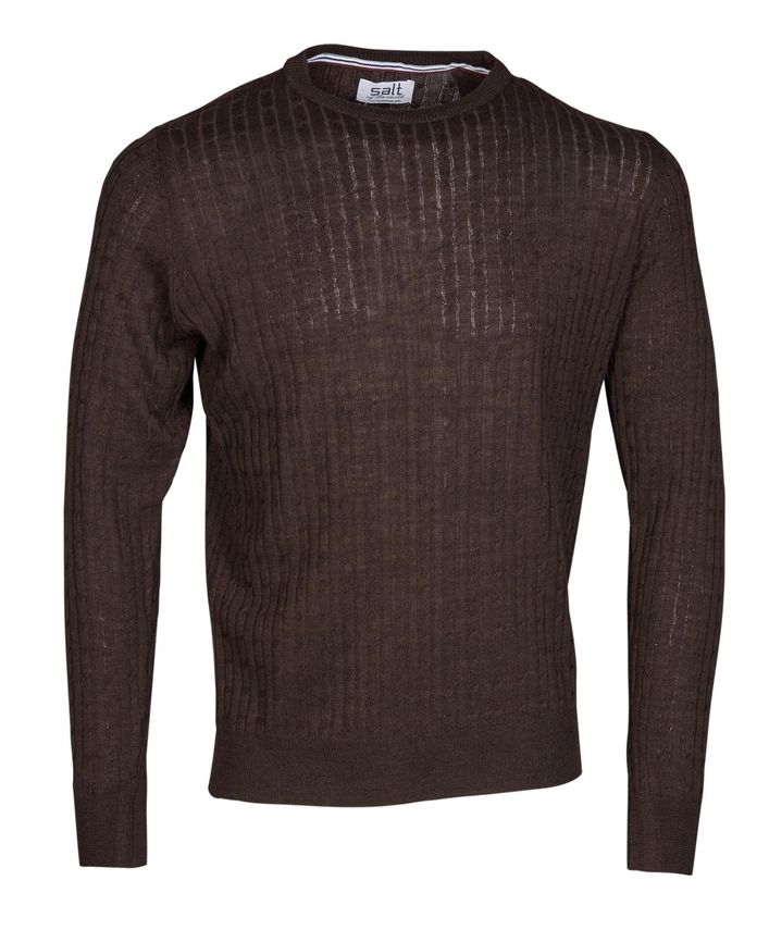 . Striktrøje med struktur og rund hals fra Salt. Fremstillet i 100% merino uld. Fås i flere farvevarianter.
