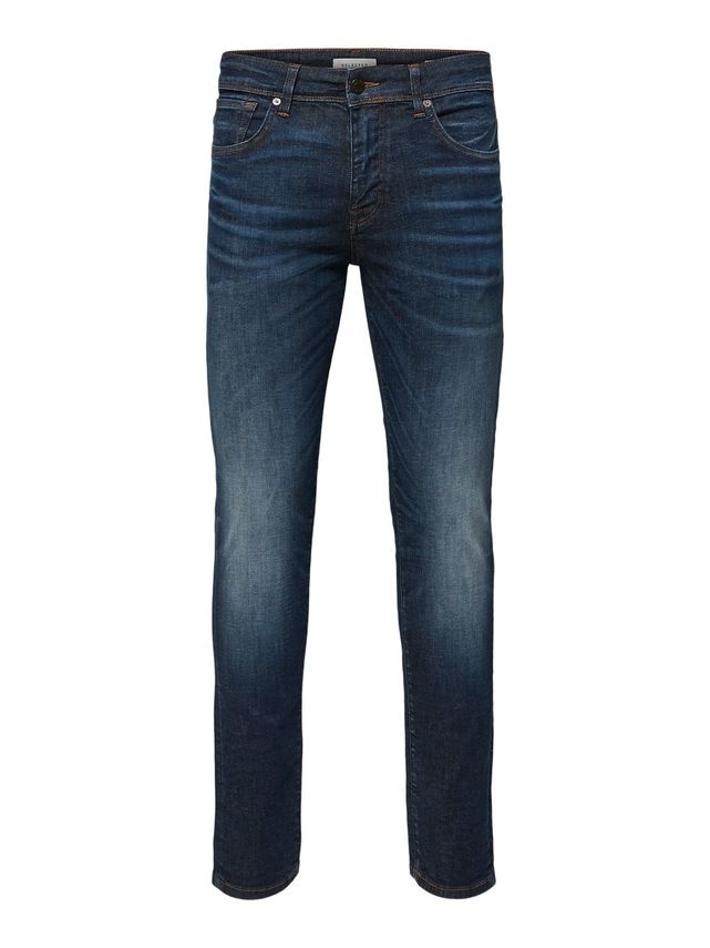 . Slim fit jeans fra Selected i 77% bomuld, 14% modal, 6% polyethylen og 3% elastan.